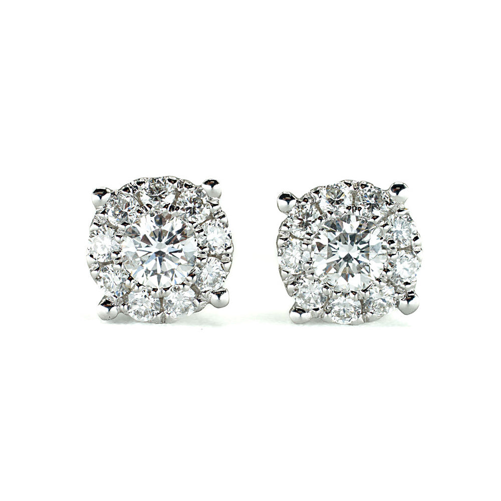 14K White Gold Small Diamond Cluster Studs