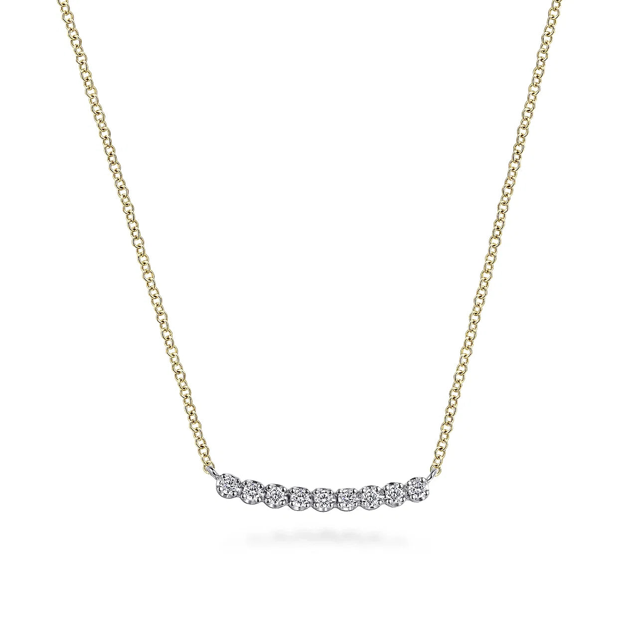 14K White and Yellow Gold White Sapphire Bar Necklace