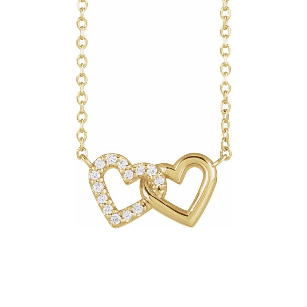 The Samantha - 14K Yellow .05 CTW Natural Diamond Petite Double Interlocking Heart 16-18" Necklace